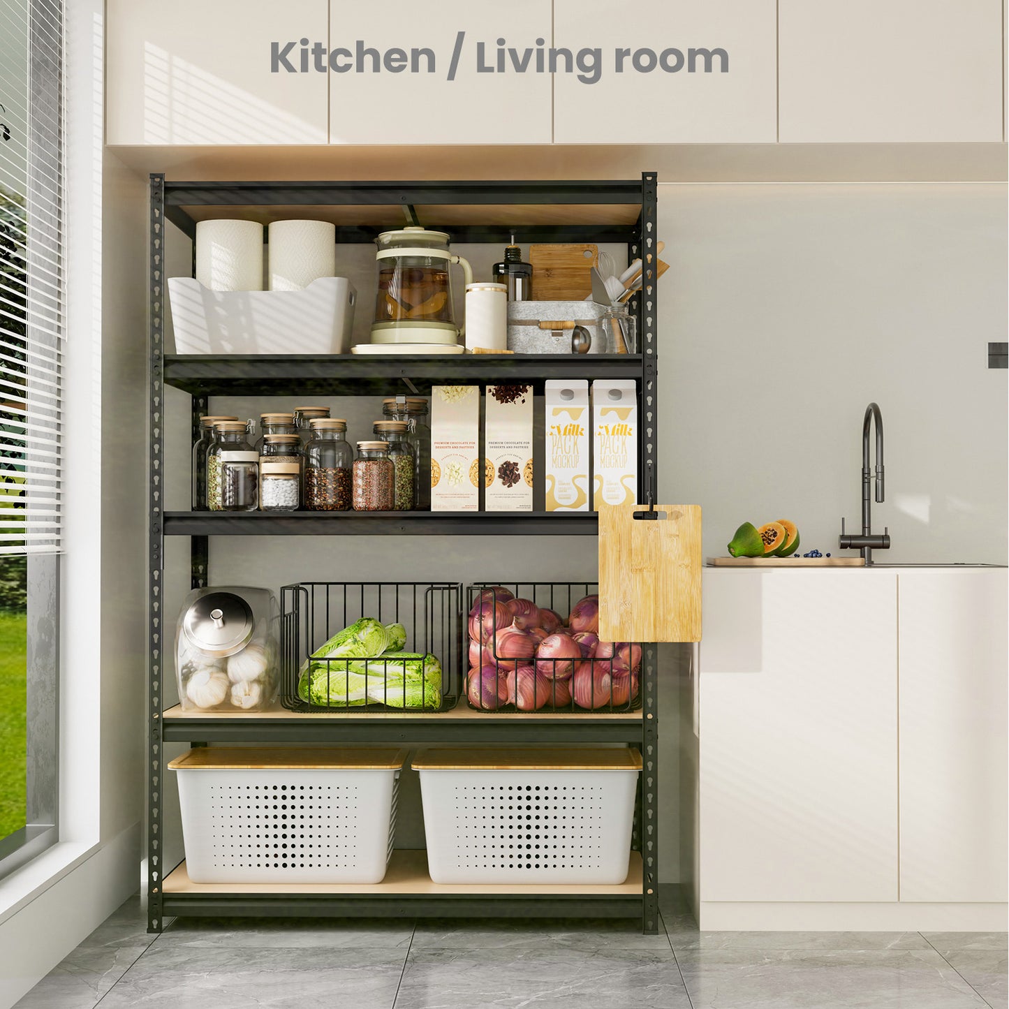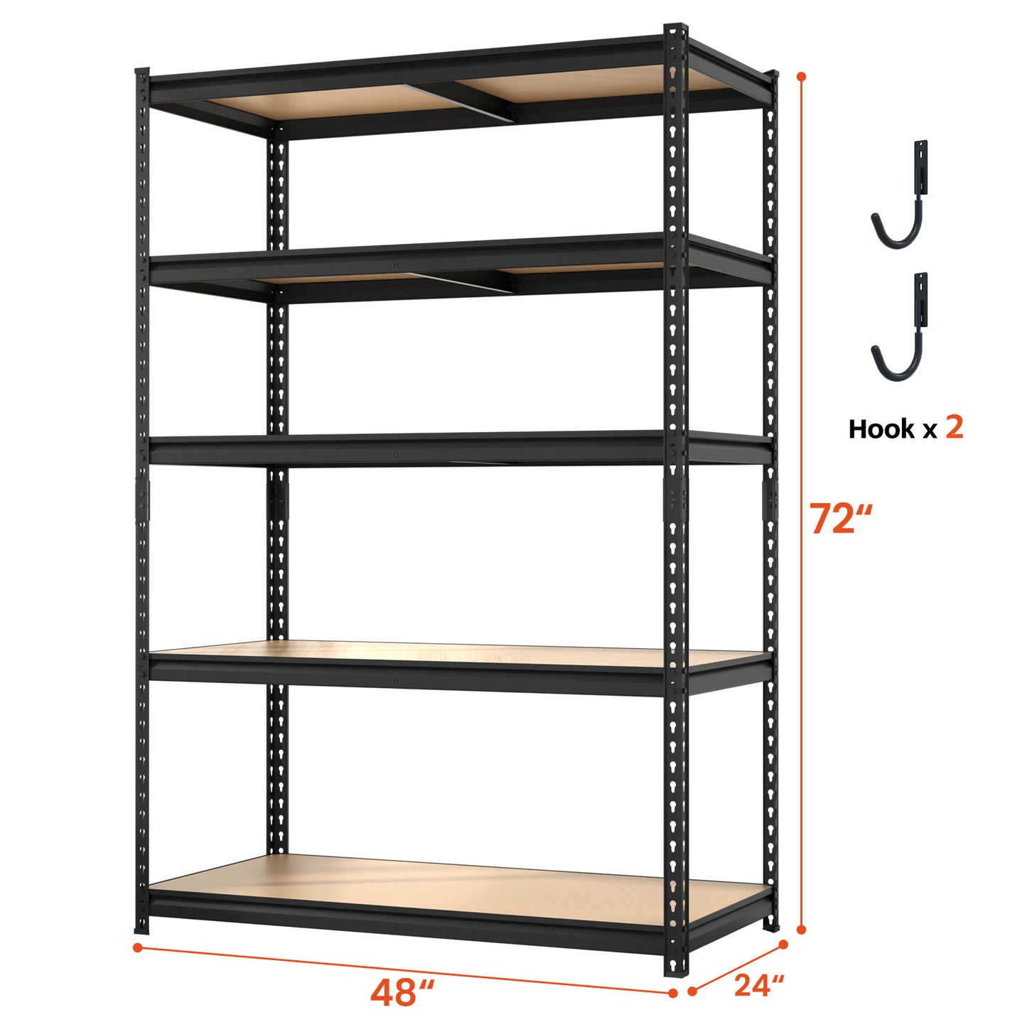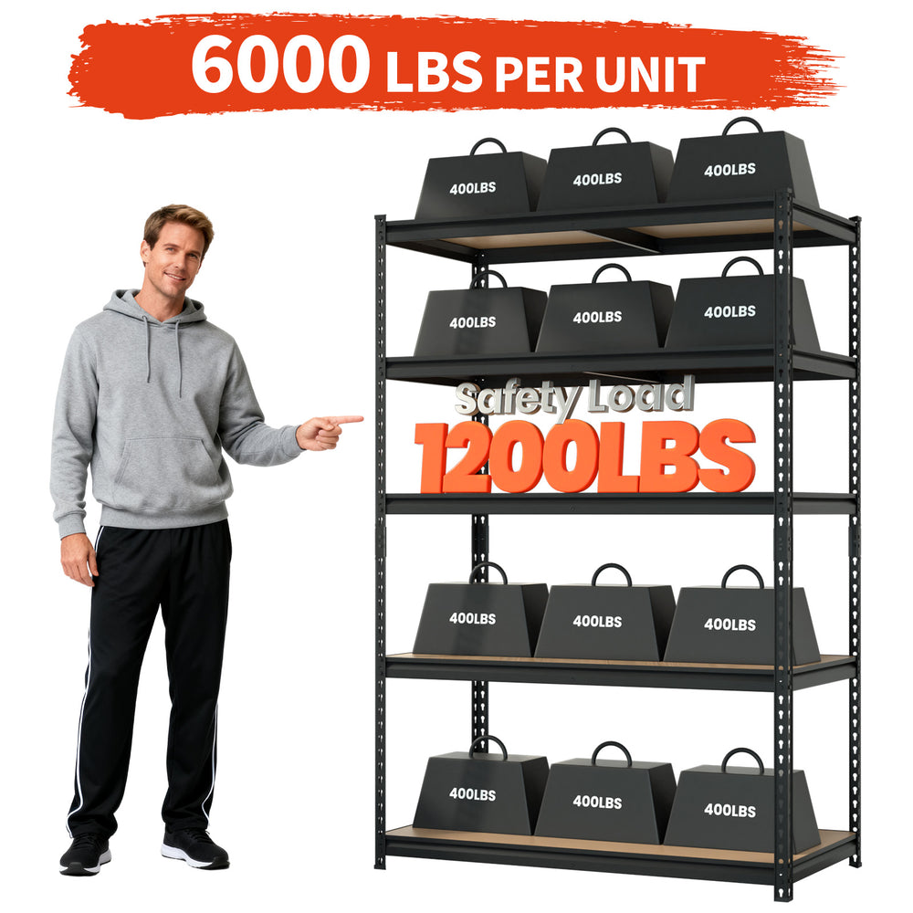 【COMMERCIAL-GRADE 6000 LBS CAPACITY】 Store everything with zero worries. This industrial shelving unit is built from a reinforced steel frame, with each of the 5 tiers supporting a massive 1200 lbs. Perfect for heavy tools, equipment, and bulk supplies. Your ultimate heavy duty storage solution.