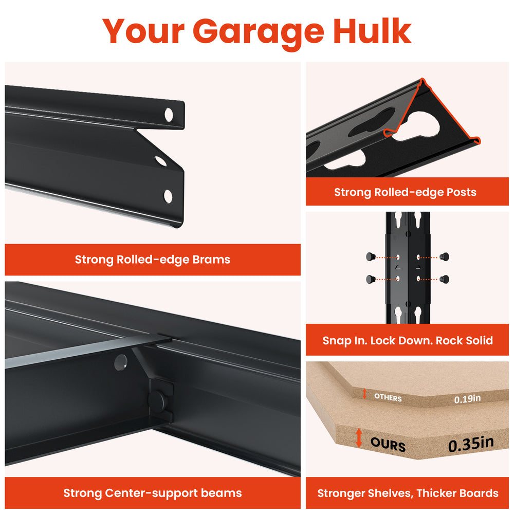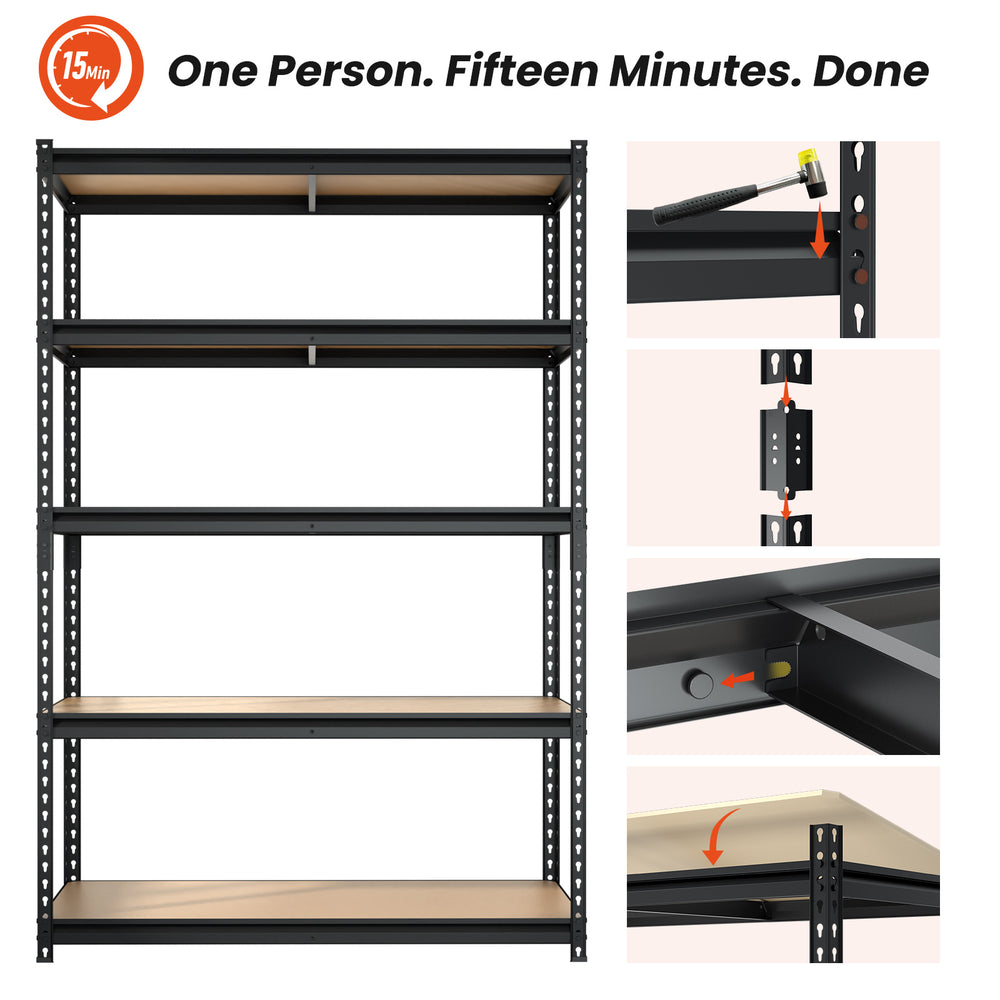 【15-MINUTE BOLTLESS ASSEMBLY】 No bolts, no screws, no headaches. Our innovative interlocking design allows for a quick, frustration-free setup. Just use a rubber mallet to snap the secure locking mechanism into place for a stable, wobble-free metal shelving unit.