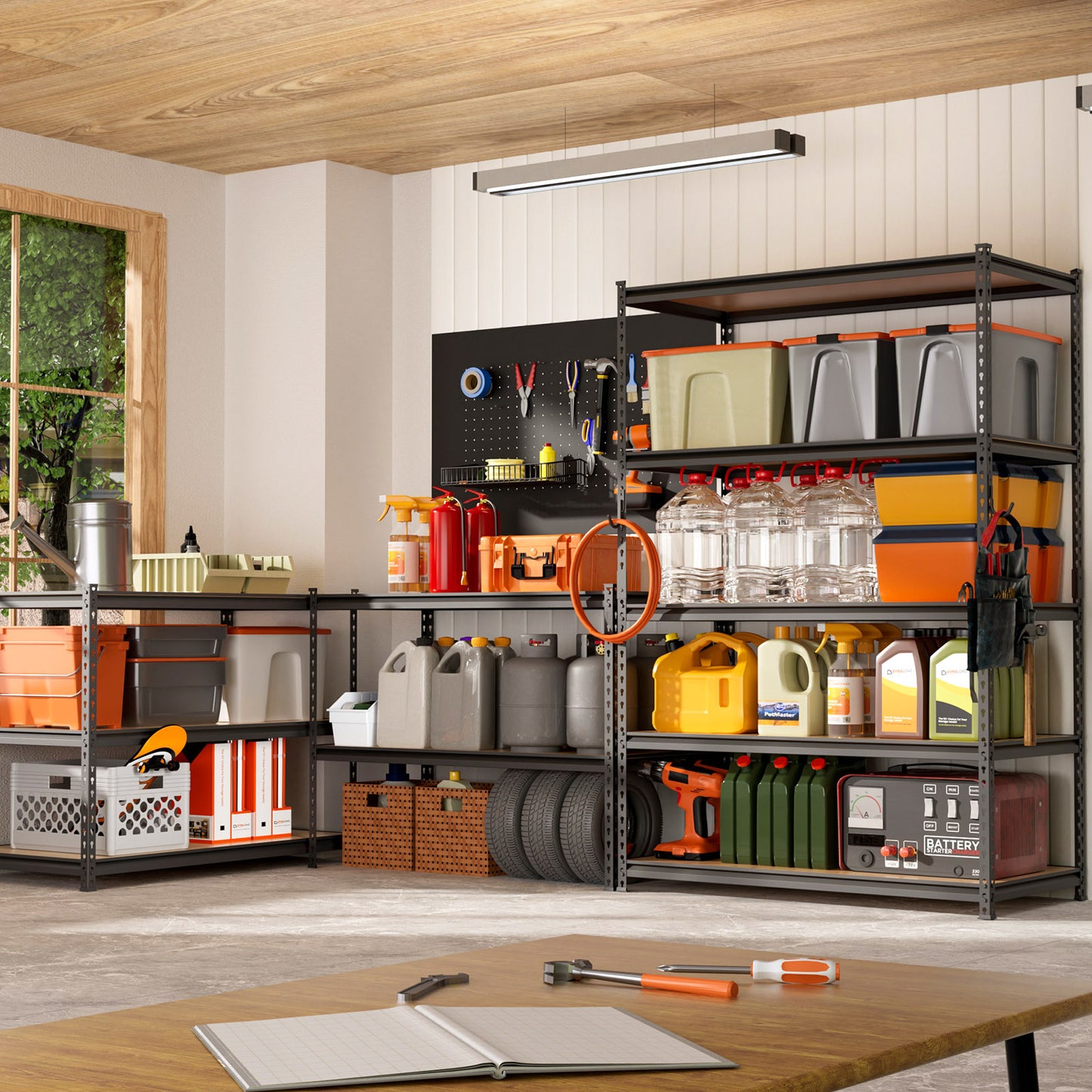 【CUSTOMIZE YOUR SPACE】 Fully adjustable shelves adapt to your needs. Set the height for large bins or small boxes. Assemble as a 72" tall 5-tier rack or as two 36" workbenches. This versatile storage rack is the perfect garage organizer or workshop workbench.